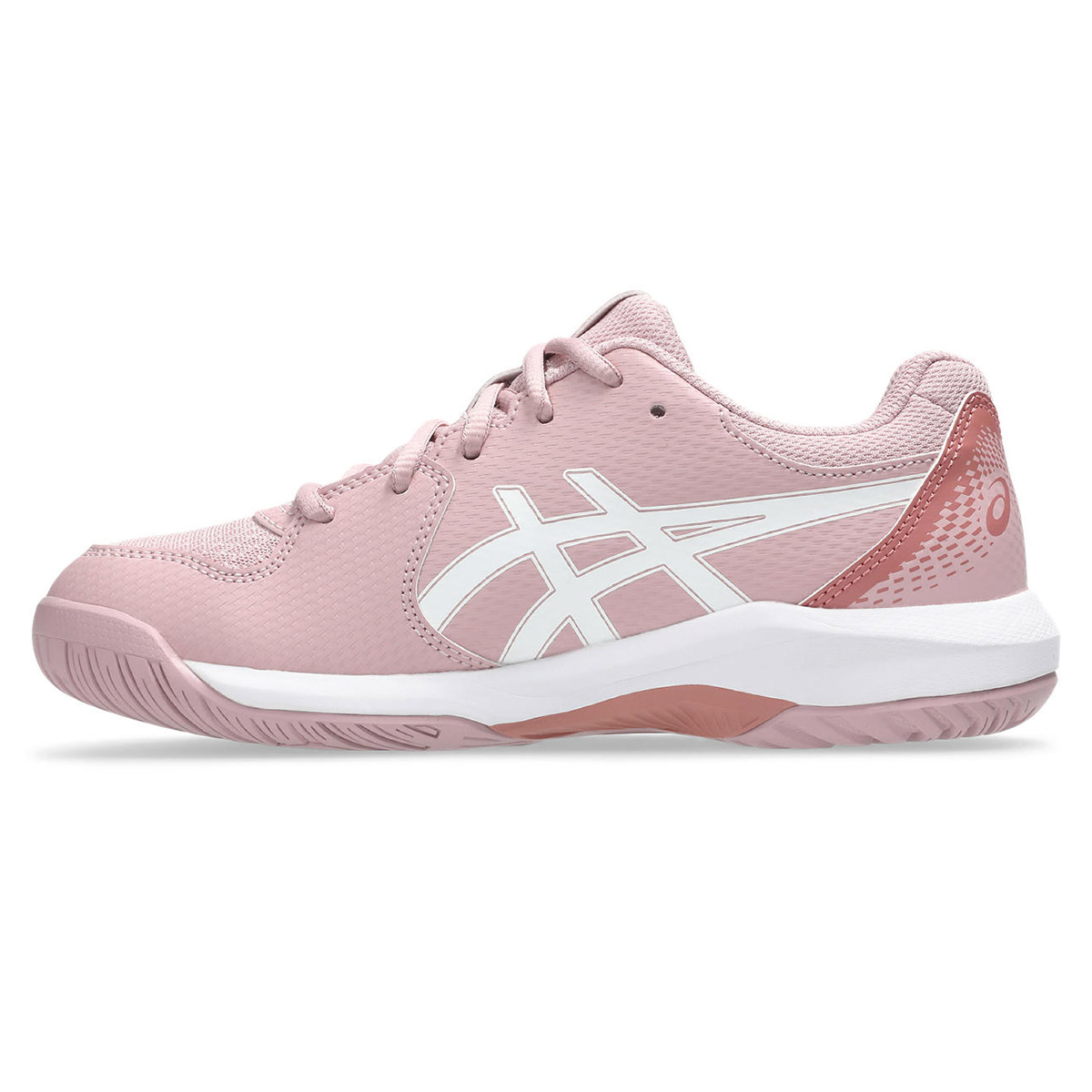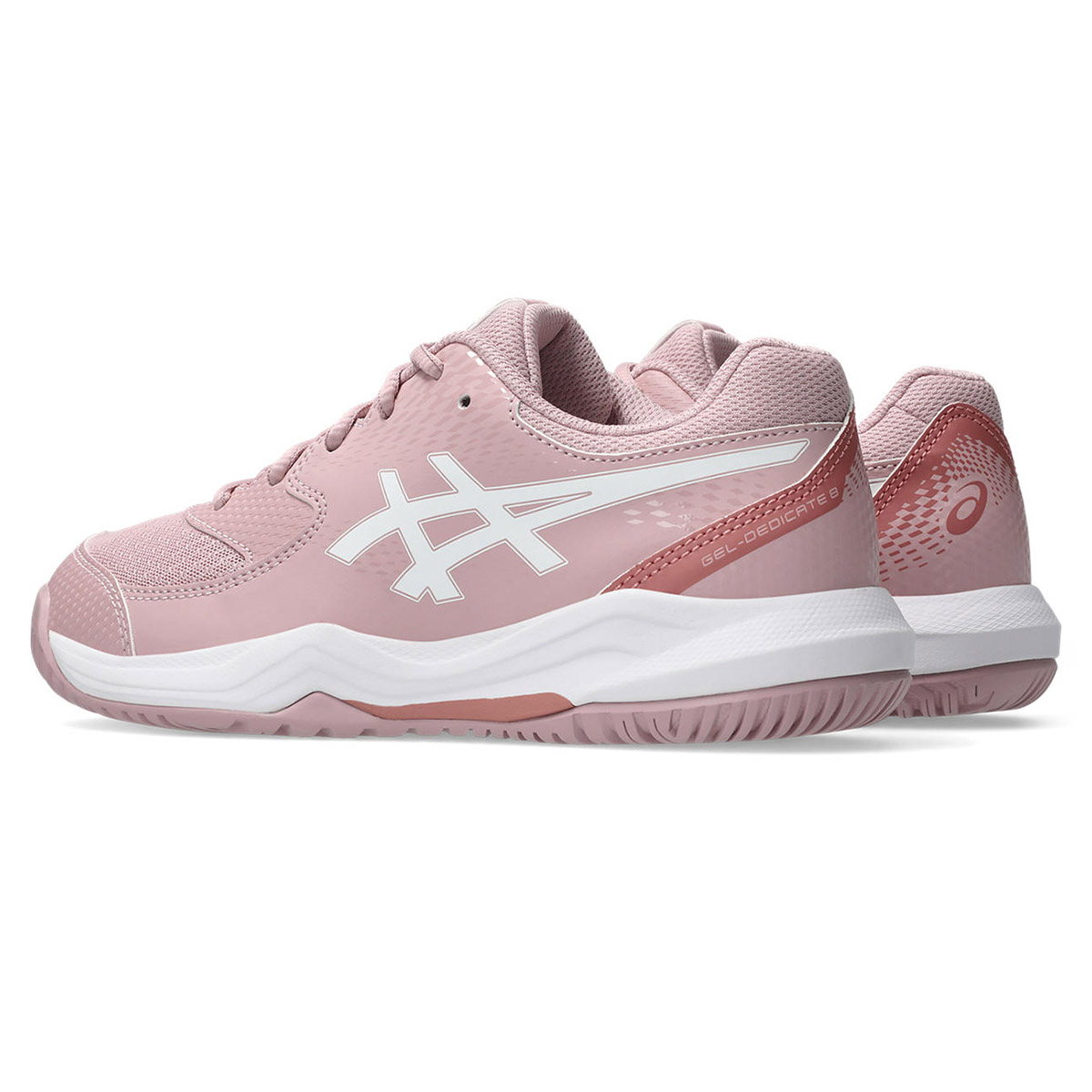 Buty Gel-Dedicate 8 GS (dla dzieci w wieku szkolnym) oferują dobrą stabilność i elastyczność dla małych stóp. Konstrukcja cholewki zawiera nakładki ze skóry syntetycznej, poprawiające podparcie. Nakładki pomagają utrzymać stopy w miejscu, podczas gdy zawodnicy zmieniają kierunki i podążają za trudnymi piłkami.