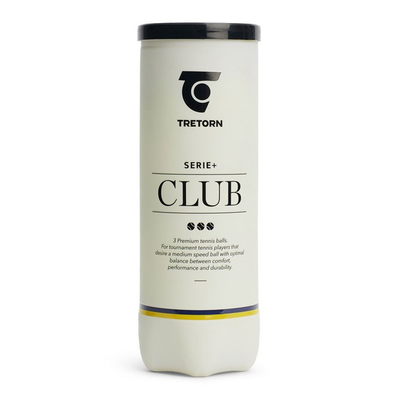 Tretorn Serie+ Club to ciśnieniowa piłka z wysokiej jakości europejskim filcem z dużą zawartością wełny. Są to nieco bardziej miękkie piłki średniej prędkości, co gwarantuje dłuższe i bardziej emocjonujące wymiany.