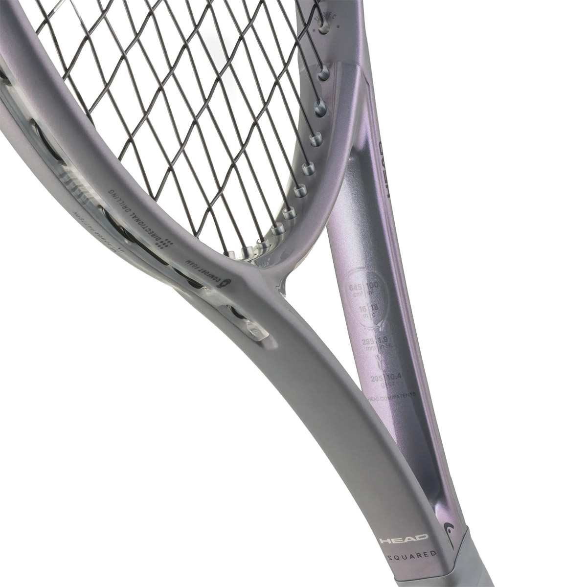Squared to odpowiedź marki HEAD na sugestie tenisistów i spełnienie ich oczekiwań. Układ strun 16 x 18 dodaje mocy i sprzyja grze z dużym zamachem, a kierunkowy układ grometów zwiększa komfort i poprawia czucie uderzenia. Nowoczesna szata graficzna w modnym szarym kolorze jest inspirowana trendami w branży motoryzacyjnej. Ekskluzywną estetykę rakiety podkreśla efekt hologramu, dzięki któremu szara barwa nabiera wyrafinowania i mieni się odcieniami — od magenty do turkusu.