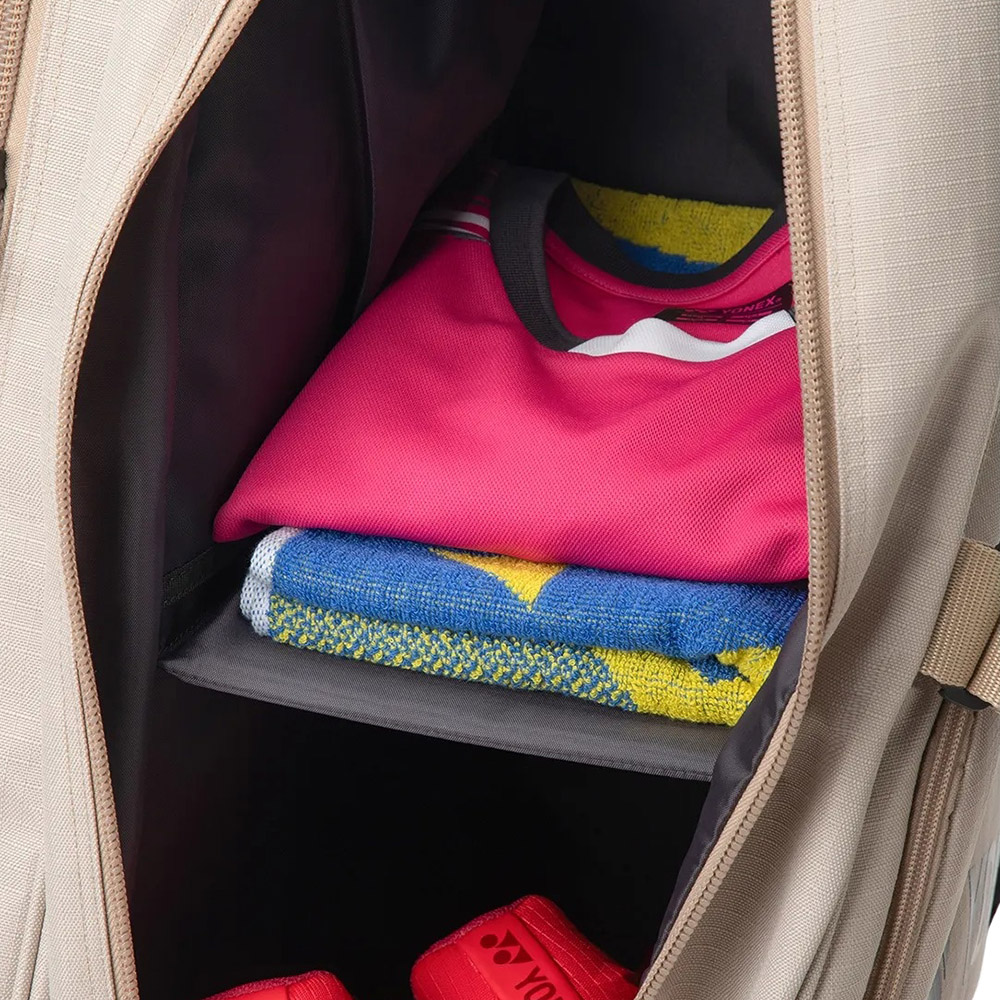 Kompaktowa torba Yonex Gearlogic 6 Pack Racquet Bag oferuje inteligentną funkcjonalność bez kompromisów. Samonośna konstrukcja utrzymuje torbę w pozycji pionowej, zapewniając wygodny i szybki dostęp do zawartości, a powlekany spód ułatwia czyszczenie. Regulowana przegroda pozwala dostosować przestrzeń do rakiet, butów, ubrań lub sprzętu.